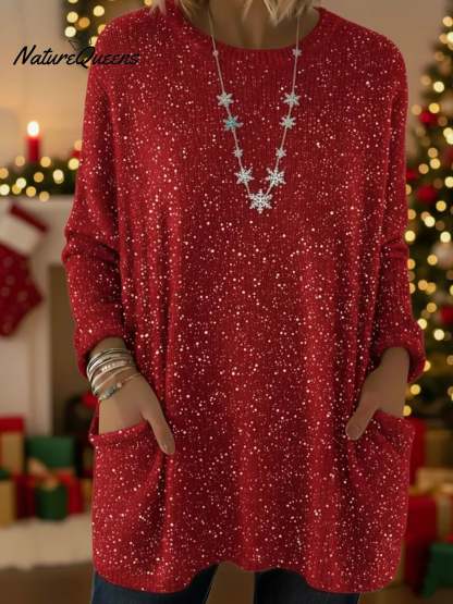 Christmas Sparkling Loose Pocket Pullover Sweater