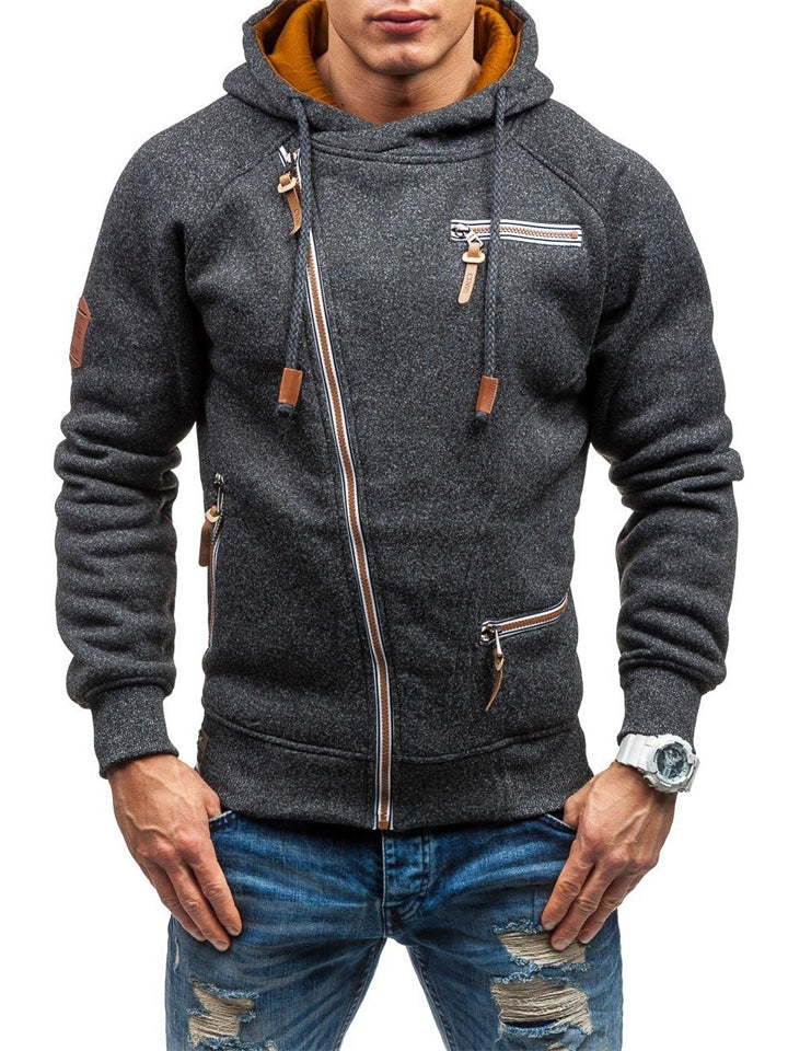 Male Personality Side Zipper Fleece Hoodies